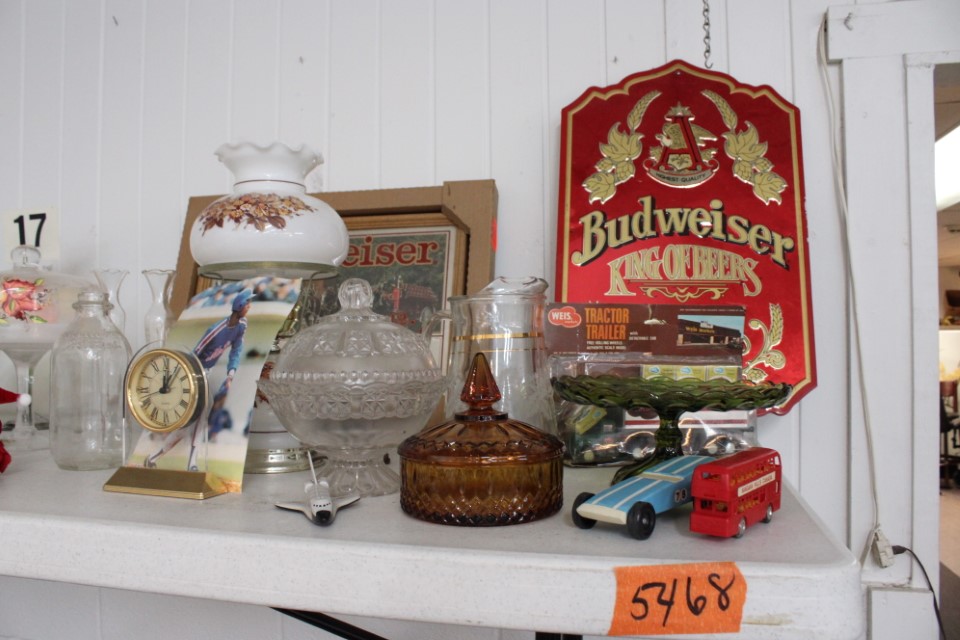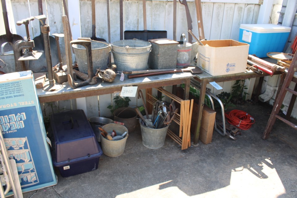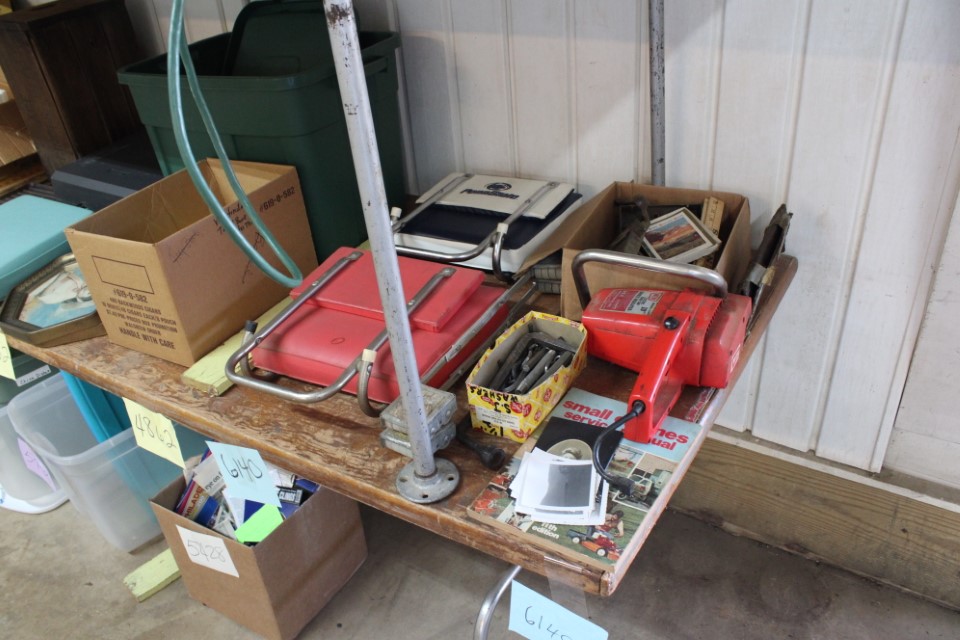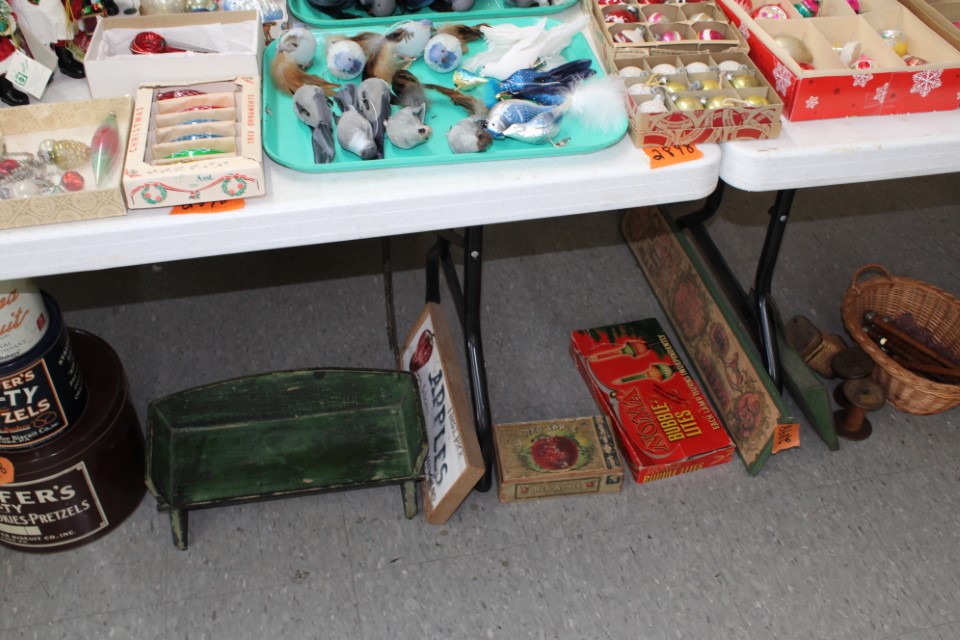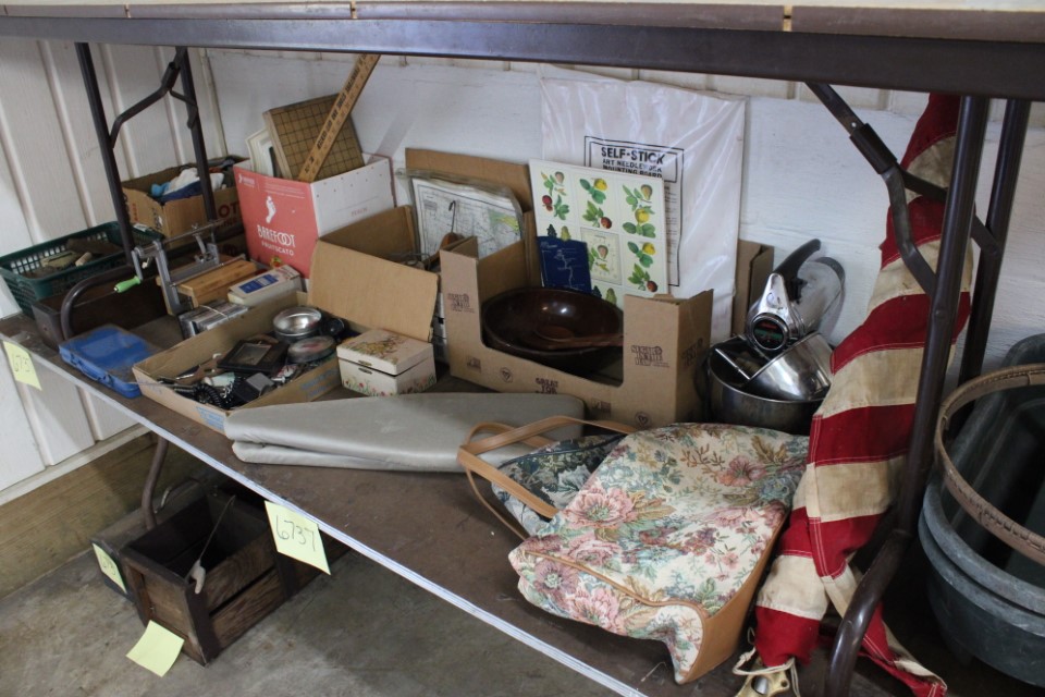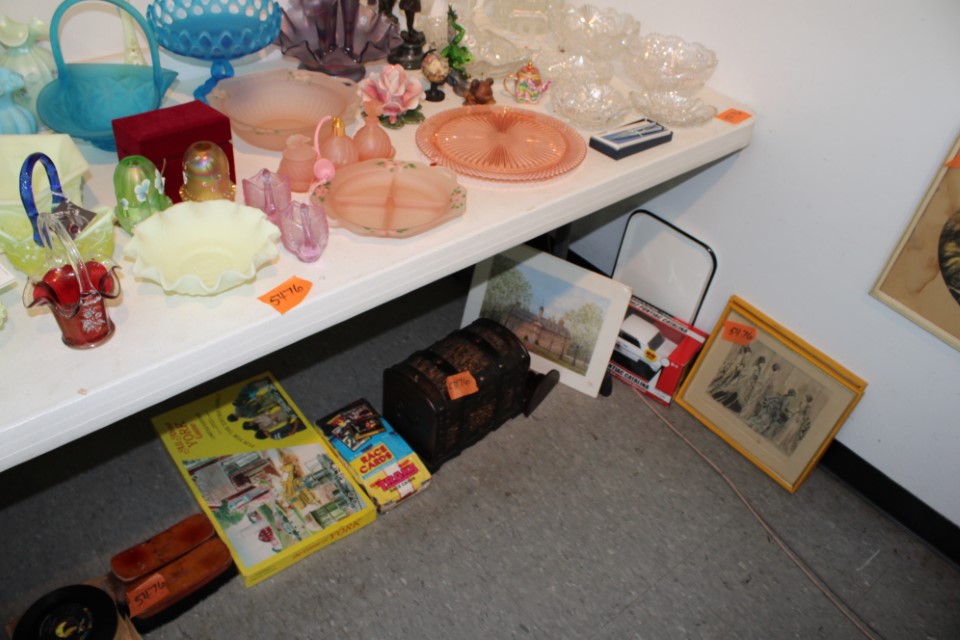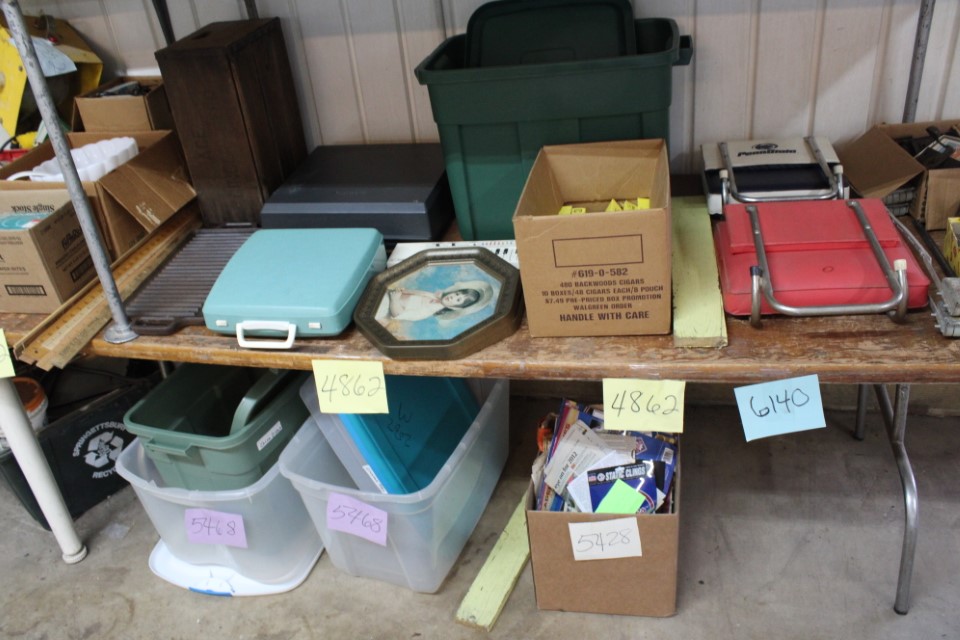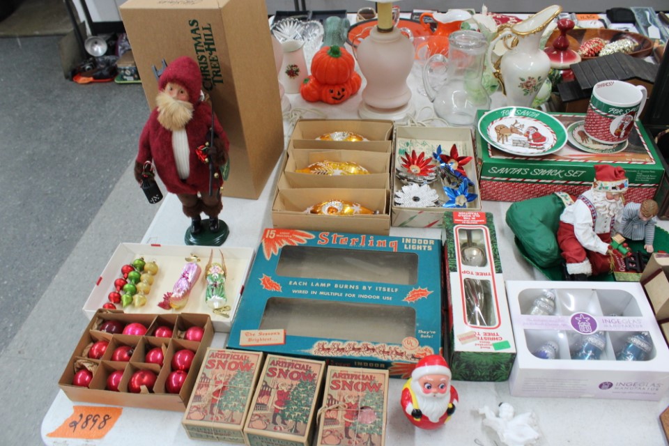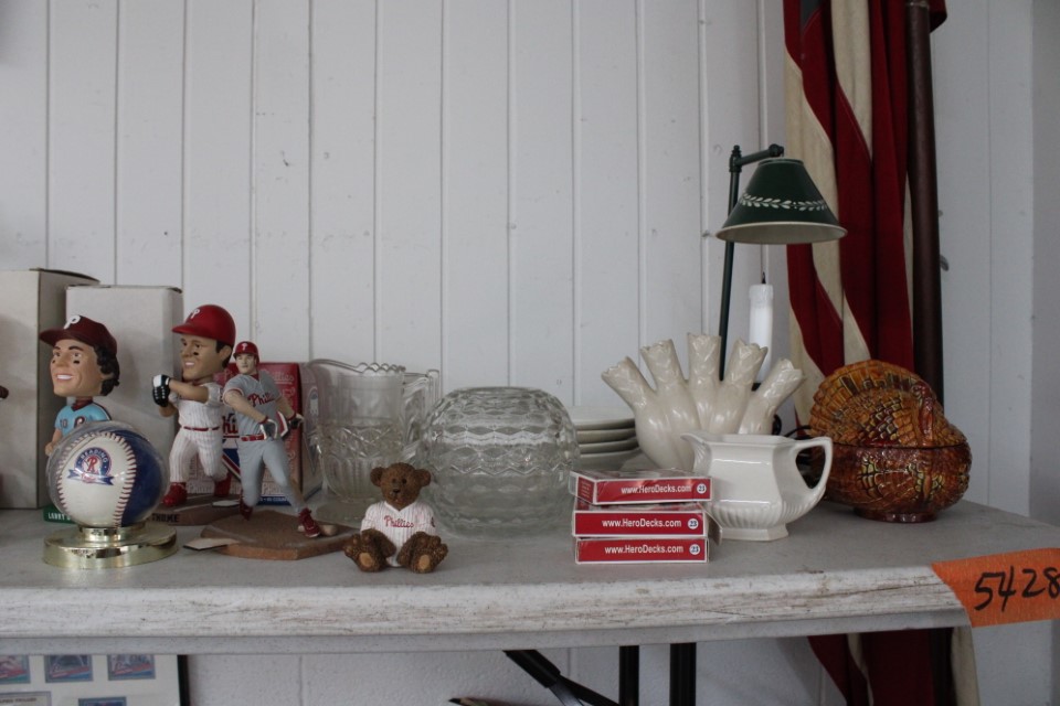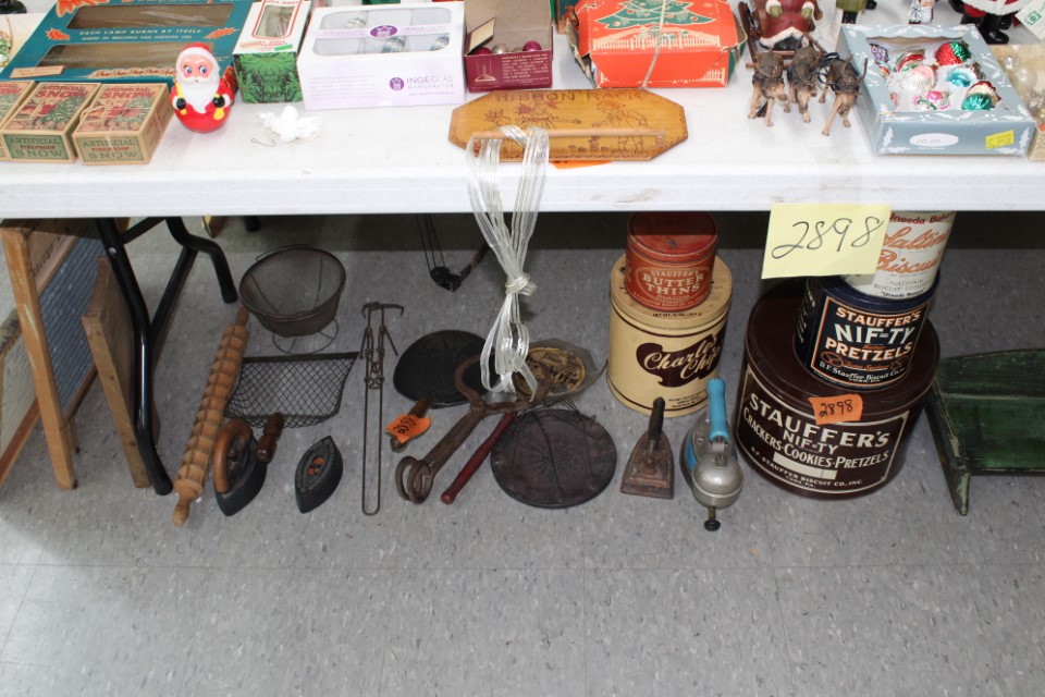 Cedar chest, end and coffee tables, storage cabinets, dining room table w/6 chairs, file cabinet, sm. chest of drawers, sofa tables, table and floor lamps, rocker, misc. tables and chairs, stools, candle stand, bookshelves, oak storage cabinet, three pc. bedroom suite, dining room table w/8 boards and 6 chairs, cameras, milkshake mixer, scouting items, Dietz lantern, cookie cutters, Wade pottery figures, mantle clocks, telephone, pictures and prints, GWTW lamp, many pcs. of Fenton glass, pink and green depression glass, cups and saucers, set of Eggshell Nautilis dishes, set of Mikasa Garden glow dishes, miniature tea sets, vintage sm. Christmas stockings, lots of Longaberger pottery and baskets, plastic Santa in sleigh, boudoir lamp, old boxes of snow, vintage and new Christmas ornaments, vintage Christmas candy boxes, Shiny Brite and Hallmark ornaments, sad irons, candle mold, coffee grinder, wash boilers, bottles, seltzer bottle, pocketknives, Madame Alexander dolls in orig. boxes, many David Winter cottages, S & P's, perfume bottles, boat in glass showcase, paperweights, Wedgewood plates, Erector set and other toys, Hanover Trust Co bank, figurines, Dallastown memoribilia, Rayo lamp, glass hats, decorated eggs, peanut butter glasses, yellowware bowl, eyeglasses, binoculars, quilts, wood planes, gloves, lg. Bibles, misc. dolls, many books, Little Golden books, lots of Phillies items, port. typewriter, magazine rack, lots of Christmas decorations and trees, window screens, ice cream freezer, booster seat, games, luggage, boots, shaving mugs, steins, records, Blossom Hill lg. tree and other very nice trees for the holiday, Electrolux sweeper, blue jars, bows, Baker Cocoa wood box, Vidette parlor stove, two garbage cans, drying racks, misc. wood boxes, fan, misc. glassware, food grinders, 10K, 14K, Sterling and costume jewelry, railroad track switch heaters, trailer hitch, snow thrower, hot water heater, Scaffolding, roof jacks, 28' and 40' fiberglass Werner extension ladders and others, stadium seats, wheelbarrow, patio heater, ping-pong table, rugs, old telephone, oil waste can, snowplow, bench, shovels, sleds, folding tables, shelving, buckets, coolers, ice skates, shoe lasts, tennis rackets, lawn chairs, flux wire welder, new inside door, porcelain top table, Mr. Heater 175,000 BTU an hour, outdoor lights, condensation removal pump, hand, garden and power tools, fishing rods, utility sink, canoe, kayaks, truck bed toolbox, chipper, rototillers,1 box lot room. Check our website at www.toomeyauction.com or auction zip #1893 for photos and additional items. Many items not listed. Preview: Sunday evening from 6 to 8 PM. Terms: Cash or Approved PA check, VISA, MC, DISC. AMEX. Jewelry sells at 12 noon, Furniture sells at 3:00 PM. |