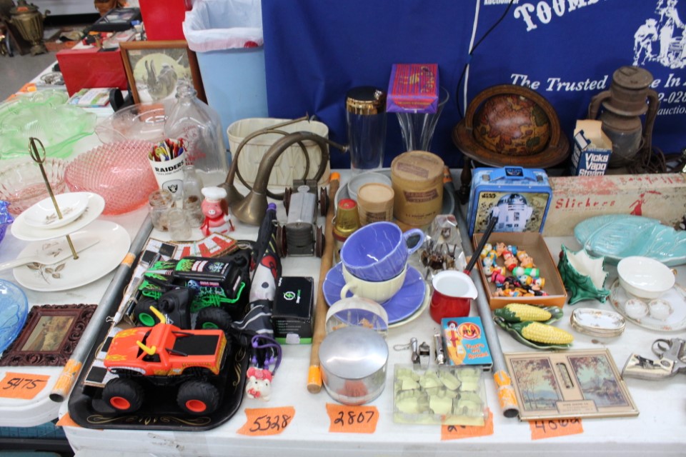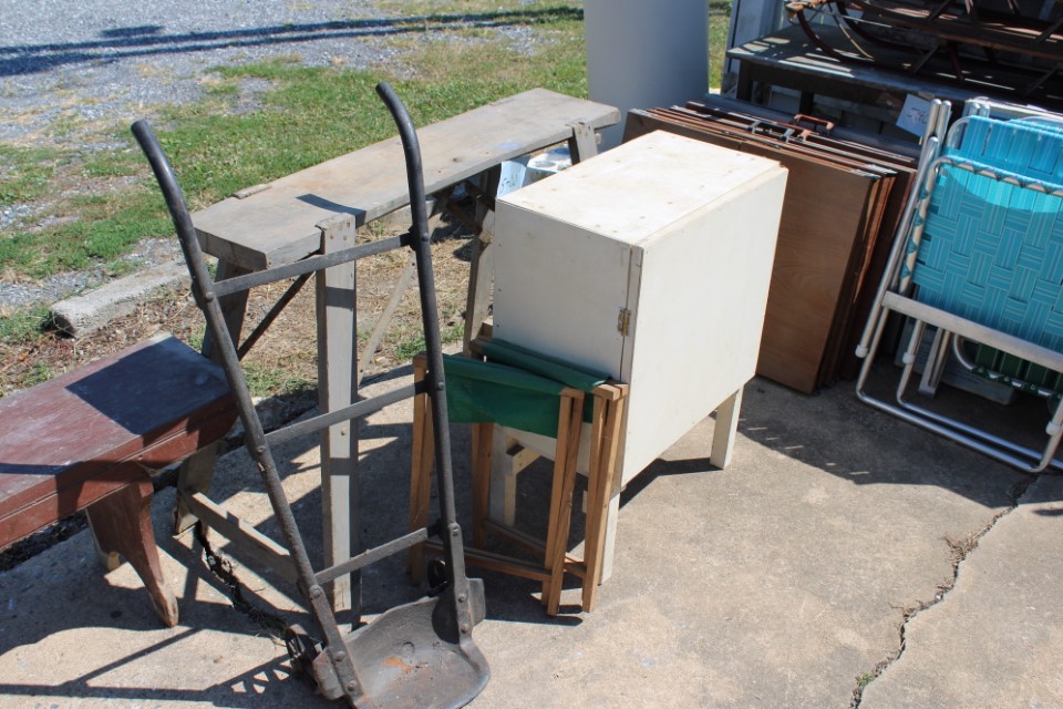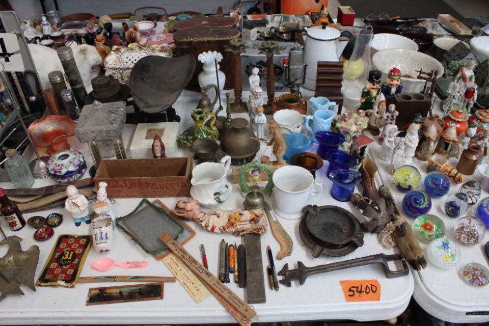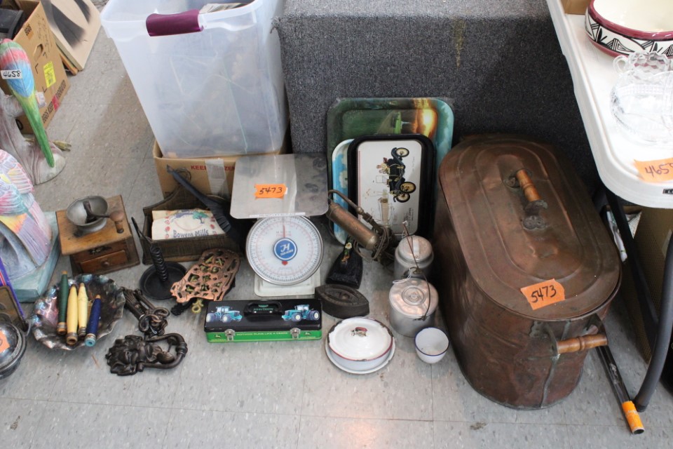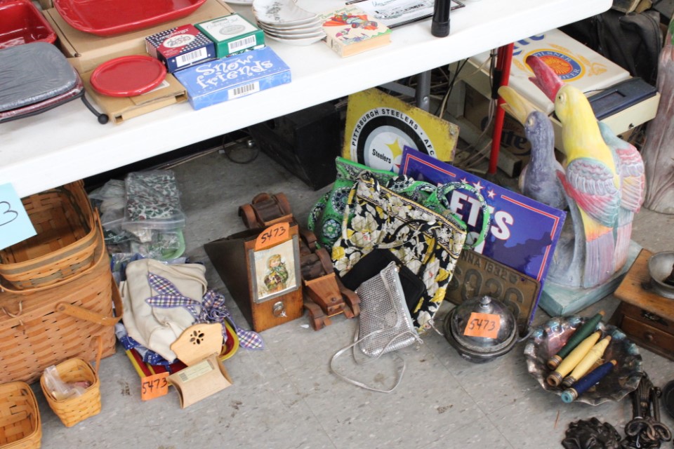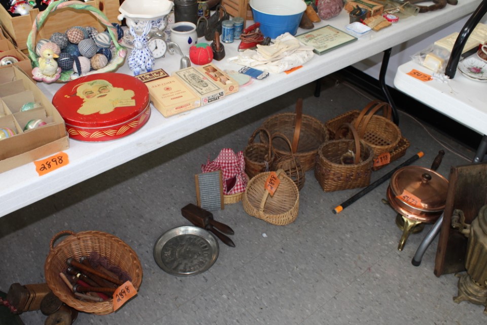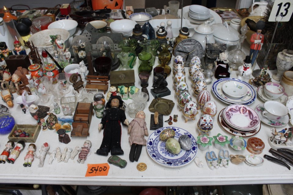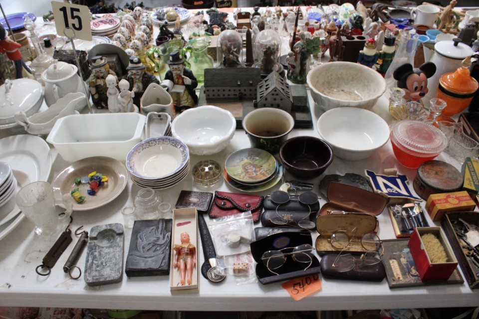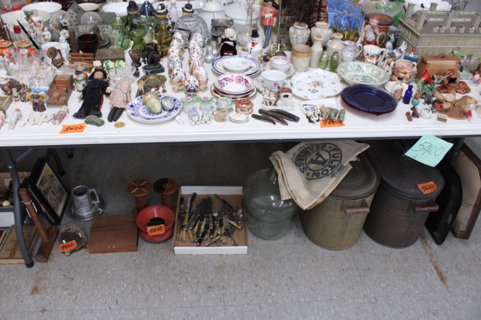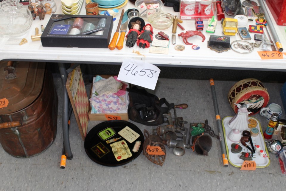 Cedar chest, end and coffee tables, storage cabinets, dining room table w/6 chairs, file cabinet, sm. chest of drawers, sofa tables, table and floor lamps, rocker, misc. tables and chairs, stools, candle stand, bookshelves, oak storage cabinet, three pc. bedroom suite, dining room table w/8 boards and 6 chairs, cameras, milkshake mixer, scouting items, Dietz lantern, cookie cutters, Wade pottery figures, mantle clocks, telephone, pictures and prints, GWTW lamp, many pcs. of Fenton glass, pink and green depression glass, cups and saucers, set of Eggshell Nautilis dishes, set of Mikasa Garden glow dishes, miniature tea sets, vintage sm. Christmas stockings, lots of Longaberger pottery and baskets, plastic Santa in sleigh, boudoir lamp, old boxes of snow, vintage and new Christmas ornaments, vintage Christmas candy boxes, Shiny Brite and Hallmark ornaments, sad irons, candle mold, coffee grinder, wash boilers, bottles, seltzer bottle, pocketknives, Madame Alexander dolls in orig. boxes, many David Winter cottages, S & P's, perfume bottles, boat in glass showcase, paperweights, Wedgewood plates, Erector set and other toys, Hanover Trust Co bank, figurines, Dallastown memoribilia, Rayo lamp, glass hats, decorated eggs, peanut butter glasses, yellowware bowl, eyeglasses, binoculars, quilts, wood planes, gloves, lg. Bibles, misc. dolls, many books, Little Golden books, lots of Phillies items, port. typewriter, magazine rack, lots of Christmas decorations and trees, window screens, ice cream freezer, booster seat, games, luggage, boots, shaving mugs, steins, records, Blossom Hill lg. tree and other very nice trees for the holiday, Electrolux sweeper, blue jars, bows, Baker Cocoa wood box, Vidette parlor stove, two garbage cans, drying racks, misc. wood boxes, fan, misc. glassware, food grinders, 10K, 14K, Sterling and costume jewelry, railroad track switch heaters, trailer hitch, snow thrower, hot water heater, Scaffolding, roof jacks, 28' and 40' fiberglass Werner extension ladders and others, stadium seats, wheelbarrow, patio heater, ping-pong table, rugs, old telephone, oil waste can, snowplow, bench, shovels, sleds, folding tables, shelving, buckets, coolers, ice skates, shoe lasts, tennis rackets, lawn chairs, flux wire welder, new inside door, porcelain top table, Mr. Heater 175,000 BTU an hour, outdoor lights, condensation removal pump, hand, garden and power tools, fishing rods, utility sink, canoe, kayaks, truck bed toolbox, chipper, rototillers,1 box lot room. Check our website at www.toomeyauction.com or auction zip #1893 for photos and additional items. Many items not listed. Preview: Sunday evening from 6 to 8 PM. Terms: Cash or Approved PA check, VISA, MC, DISC. AMEX. Jewelry sells at 12 noon, Furniture sells at 3:00 PM. |