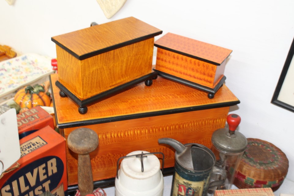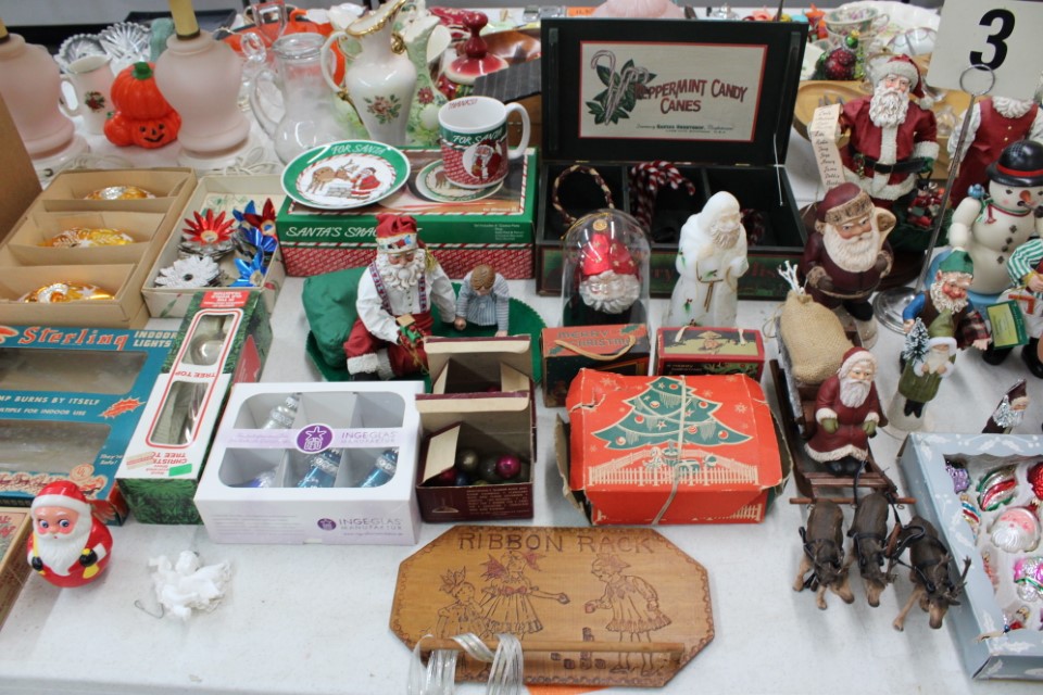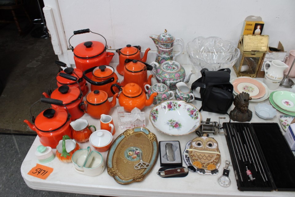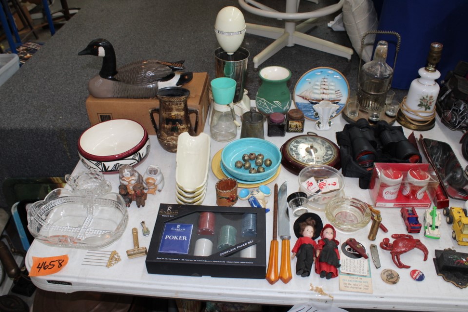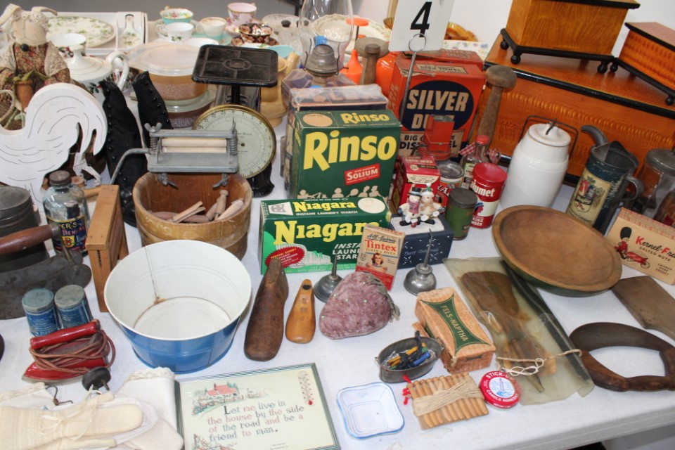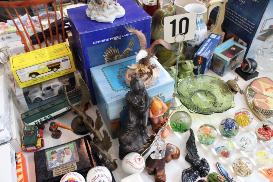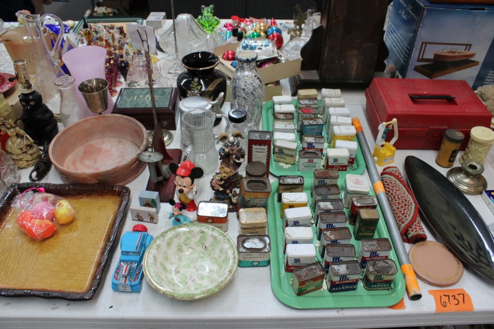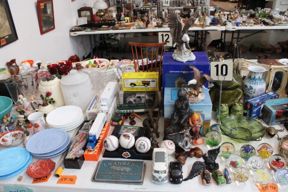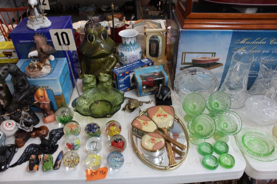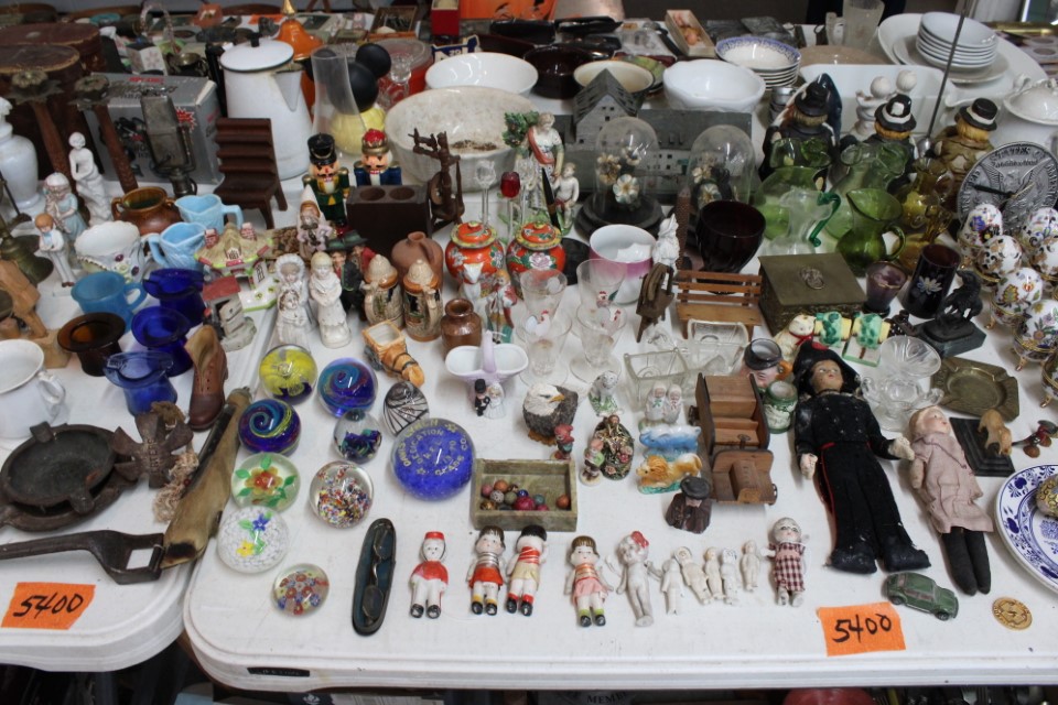 Cedar chest, end and coffee tables, storage cabinets, dining room table w/6 chairs, file cabinet, sm. chest of drawers, sofa tables, table and floor lamps, rocker, misc. tables and chairs, stools, candle stand, bookshelves, oak storage cabinet, three pc. bedroom suite, dining room table w/8 boards and 6 chairs, cameras, milkshake mixer, scouting items, Dietz lantern, cookie cutters, Wade pottery figures, mantle clocks, telephone, pictures and prints, GWTW lamp, many pcs. of Fenton glass, pink and green depression glass, cups and saucers, set of Eggshell Nautilis dishes, set of Mikasa Garden glow dishes, miniature tea sets, vintage sm. Christmas stockings, lots of Longaberger pottery and baskets, plastic Santa in sleigh, boudoir lamp, old boxes of snow, vintage and new Christmas ornaments, vintage Christmas candy boxes, Shiny Brite and Hallmark ornaments, sad irons, candle mold, coffee grinder, wash boilers, bottles, seltzer bottle, pocketknives, Madame Alexander dolls in orig. boxes, many David Winter cottages, S & P's, perfume bottles, boat in glass showcase, paperweights, Wedgewood plates, Erector set and other toys, Hanover Trust Co bank, figurines, Dallastown memoribilia, Rayo lamp, glass hats, decorated eggs, peanut butter glasses, yellowware bowl, eyeglasses, binoculars, quilts, wood planes, gloves, lg. Bibles, misc. dolls, many books, Little Golden books, lots of Phillies items, port. typewriter, magazine rack, lots of Christmas decorations and trees, window screens, ice cream freezer, booster seat, games, luggage, boots, shaving mugs, steins, records, Blossom Hill lg. tree and other very nice trees for the holiday, Electrolux sweeper, blue jars, bows, Baker Cocoa wood box, Vidette parlor stove, two garbage cans, drying racks, misc. wood boxes, fan, misc. glassware, food grinders, 10K, 14K, Sterling and costume jewelry, railroad track switch heaters, trailer hitch, snow thrower, hot water heater, Scaffolding, roof jacks, 28' and 40' fiberglass Werner extension ladders and others, stadium seats, wheelbarrow, patio heater, ping-pong table, rugs, old telephone, oil waste can, snowplow, bench, shovels, sleds, folding tables, shelving, buckets, coolers, ice skates, shoe lasts, tennis rackets, lawn chairs, flux wire welder, new inside door, porcelain top table, Mr. Heater 175,000 BTU an hour, outdoor lights, condensation removal pump, hand, garden and power tools, fishing rods, utility sink, canoe, kayaks, truck bed toolbox, chipper, rototillers,1 box lot room. Check our website at www.toomeyauction.com or auction zip #1893 for photos and additional items. Many items not listed. Preview: Sunday evening from 6 to 8 PM. Terms: Cash or Approved PA check, VISA, MC, DISC. AMEX. Jewelry sells at 12 noon, Furniture sells at 3:00 PM. |