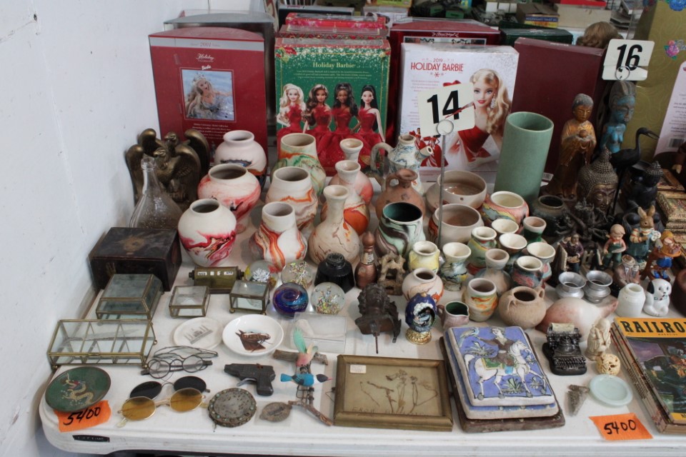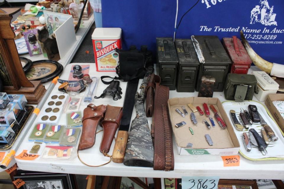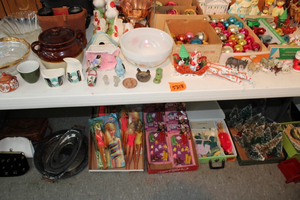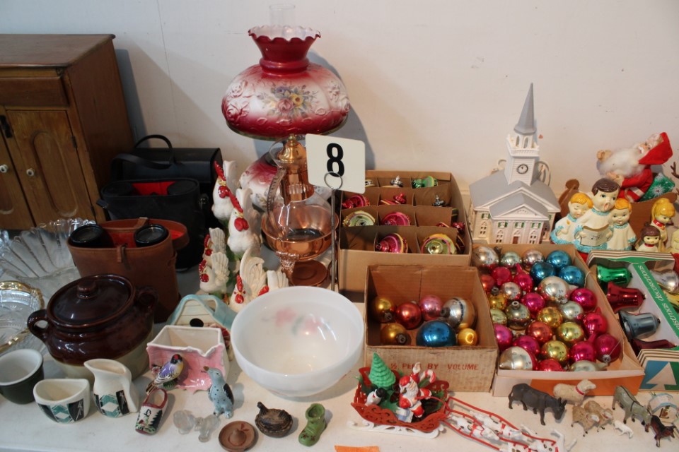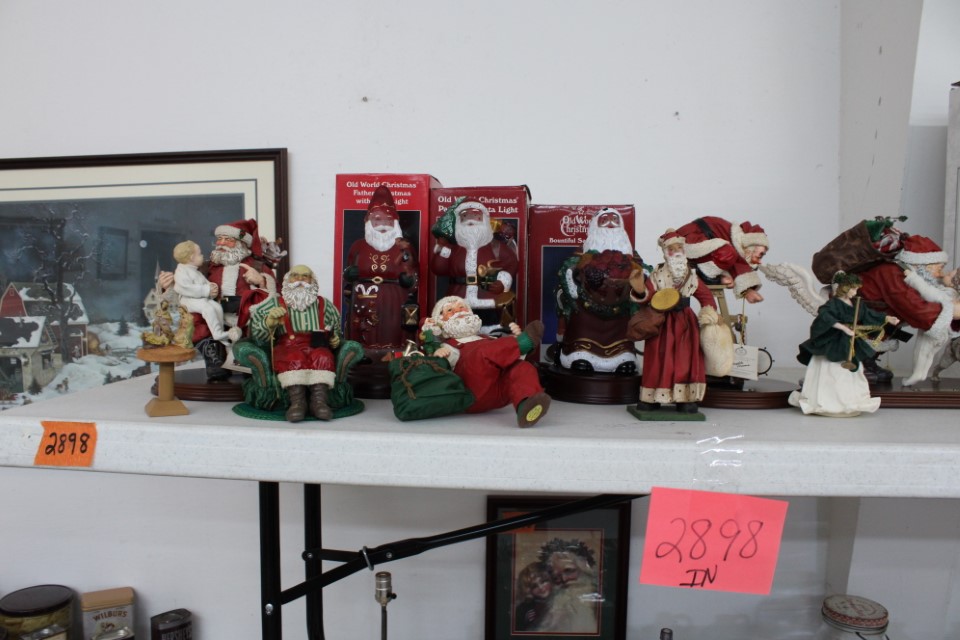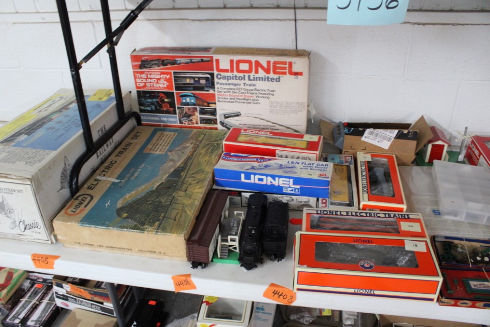 Chests of drawers, screen, floor and table lamps, quilt rack, ottomans, lg. oriental style rug, recliner sofas and recliners, washstands, cradle, drop front desk, misc. tables and chairs, kitchen tables and chairs, jelly cupboard, bakers rack, smoking stand, rocker, high oak bed and dresser, beds and bedding, porch rockers and chairs, picnic tables and benches, wrought iron patio furniture, many pictures and prints including Icart prints and other oils and watercolors, pocketknives, cartridge boxes, holsters, wall, table and mantle clocks, Roomba, snowshoes, Watt pottery, candy molds, hand scales, vintage curling irons, hand mirrors, many adv. tins, cookie cutters, lots of very nice Christmas items to inc. Santa's, Old World and Inge Glass ornaments, vintage stocking, Hallmark, Byers Choice Santa and carolers, bottlebrush trees and more, Wiss scissors cabinet, drying rack, powder horns, lanterns, crocheted items, quilts, cowboy boots, oil lamps, Lecoultre clock, early bisque doll, Barbies in orig. boxes and others, original Shirley Temple dolls and misc. items, Pyrex, carnival, depression and pattern glass, Hess trucks, Matchbox & Hot Wheels, food choppers, enamelware, baskets, crocks and jugs, Philco radio, handbags, buttons, milkglass, art glass pcs., poker chips, min. jelly cupboard, planters, cuckoo clocks, barometer, Halloween decorations inc. lg. pumpkin blow mold, glass baskets, swan dishes, Lenox items, rolling pins, S & P's, rag rugs, Disney items, fire truck pedal truck, glass candy, teapots, cameras, many books,cast iron lady doorstop, 1786 Indenture for 213 acres in Manchester Township, York County belonging to the Wolff family, decoys, set of Staffordshire"Royal Mail" china, canes, Keystone Beverages, Hbg wood adv. box, Nemadji pottery, Persian tiles, S. Korea flag from the Korean War, violin in wood box, marbles, Chatty Cathy doll in box, 10-25 cent comics, binoculars, steins, Indentures, tin army tank, kewpie and Hummel dolls, doll stroller, card racks, block planes, hand, garden and power tools, lg. amber bottle, sm. artificial trees, sm. early stools, fishing rods, nets, tackle boxes, character glasses, bottles, electronics, kitchen utensils, tin foil adv. box, 20" window fan, humidifer and dehumidifier, Hamilton Beach roaster, wicker coffee table, DVD's, records, new size 12 men's shoes, storage boxes, sm. kitchen appliances, Schoenhut piano, heaters, folding tables, frames, blue canning jars, cookware, toys, Pfaltzgraff dishes, shower chair, air compressor, coolers, wheelbarrow, stand alone mailbox, cast iron Oak potbelly stove, grills, sweepers, slate shingles, tires, wooden bench, porch swing, sm. fountain, hay cradle, electric mower, ladders, reel mower, two man saws, aluminium glider, shelving and much more. Trains in main room start selling at 10:00 A.M. to inc: O/O27, HO, N gauges engines, rolling stock, Cragstan metal accessories, platform people and cars, Plasticville and other buildings, signals, new track, etc. Trains in box lots rooms will be sold with the regular box lots. Two rooms of box lots. Check our website at www.toomeyauction.com or auction zip #1893 for additions and photos. Jewelry sells at 12 noon, Furniture sells at 3:00 PM. Terms: Cash or Approved PA check, VISA, MC, DISC, AMEX. PREVIEW: Sunday evening from 6 to 8 PM. 10% Buyers Premium. |