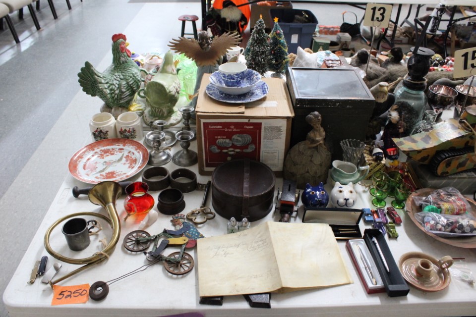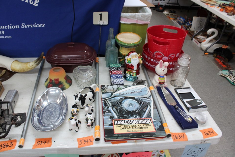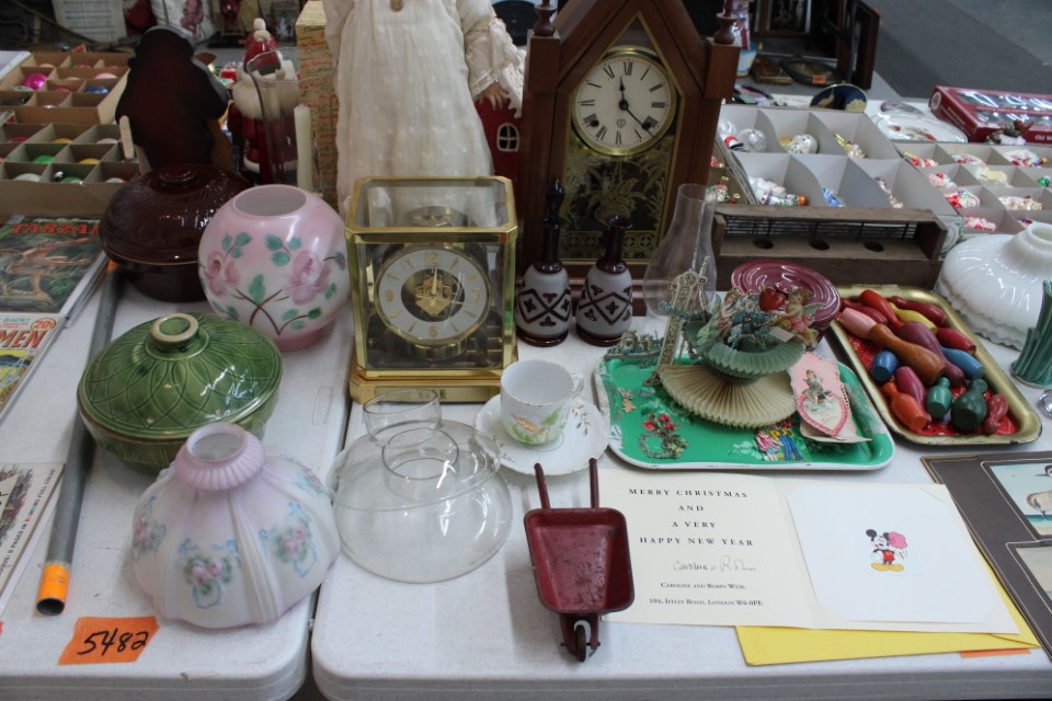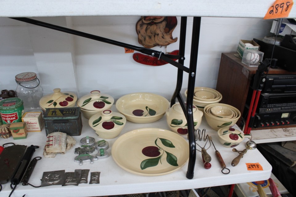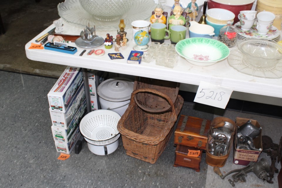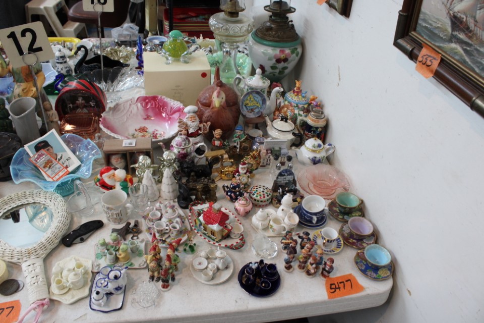 Chests of drawers, screen, floor and table lamps, quilt rack, ottomans, lg. oriental style rug, recliner sofas and recliners, washstands, cradle, drop front desk, misc. tables and chairs, kitchen tables and chairs, jelly cupboard, bakers rack, smoking stand, rocker, high oak bed and dresser, beds and bedding, porch rockers and chairs, picnic tables and benches, wrought iron patio furniture, many pictures and prints including Icart prints and other oils and watercolors, pocketknives, cartridge boxes, holsters, wall, table and mantle clocks, Roomba, snowshoes, Watt pottery, candy molds, hand scales, vintage curling irons, hand mirrors, many adv. tins, cookie cutters, lots of very nice Christmas items to inc. Santa's, Old World and Inge Glass ornaments, vintage stocking, Hallmark, Byers Choice Santa and carolers, bottlebrush trees and more, Wiss scissors cabinet, drying rack, powder horns, lanterns, crocheted items, quilts, cowboy boots, oil lamps, Lecoultre clock, early bisque doll, Barbies in orig. boxes and others, original Shirley Temple dolls and misc. items, Pyrex, carnival, depression and pattern glass, Hess trucks, Matchbox & Hot Wheels, food choppers, enamelware, baskets, crocks and jugs, Philco radio, handbags, buttons, milkglass, art glass pcs., poker chips, min. jelly cupboard, planters, cuckoo clocks, barometer, Halloween decorations inc. lg. pumpkin blow mold, glass baskets, swan dishes, Lenox items, rolling pins, S & P's, rag rugs, Disney items, fire truck pedal truck, glass candy, teapots, cameras, many books,cast iron lady doorstop, 1786 Indenture for 213 acres in Manchester Township, York County belonging to the Wolff family, decoys, set of Staffordshire"Royal Mail" china, canes, Keystone Beverages, Hbg wood adv. box, Nemadji pottery, Persian tiles, S. Korea flag from the Korean War, violin in wood box, marbles, Chatty Cathy doll in box, 10-25 cent comics, binoculars, steins, Indentures, tin army tank, kewpie and Hummel dolls, doll stroller, card racks, block planes, hand, garden and power tools, lg. amber bottle, sm. artificial trees, sm. early stools, fishing rods, nets, tackle boxes, character glasses, bottles, electronics, kitchen utensils, tin foil adv. box, 20" window fan, humidifer and dehumidifier, Hamilton Beach roaster, wicker coffee table, DVD's, records, new size 12 men's shoes, storage boxes, sm. kitchen appliances, Schoenhut piano, heaters, folding tables, frames, blue canning jars, cookware, toys, Pfaltzgraff dishes, shower chair, air compressor, coolers, wheelbarrow, stand alone mailbox, cast iron Oak potbelly stove, grills, sweepers, slate shingles, tires, wooden bench, porch swing, sm. fountain, hay cradle, electric mower, ladders, reel mower, two man saws, aluminium glider, shelving and much more. Trains in main room start selling at 10:00 A.M. to inc: O/O27, HO, N gauges engines, rolling stock, Cragstan metal accessories, platform people and cars, Plasticville and other buildings, signals, new track, etc. Trains in box lots rooms will be sold with the regular box lots. Two rooms of box lots. Check our website at www.toomeyauction.com or auction zip #1893 for additions and photos. Jewelry sells at 12 noon, Furniture sells at 3:00 PM. Terms: Cash or Approved PA check, VISA, MC, DISC, AMEX. PREVIEW: Sunday evening from 6 to 8 PM. 10% Buyers Premium. |
