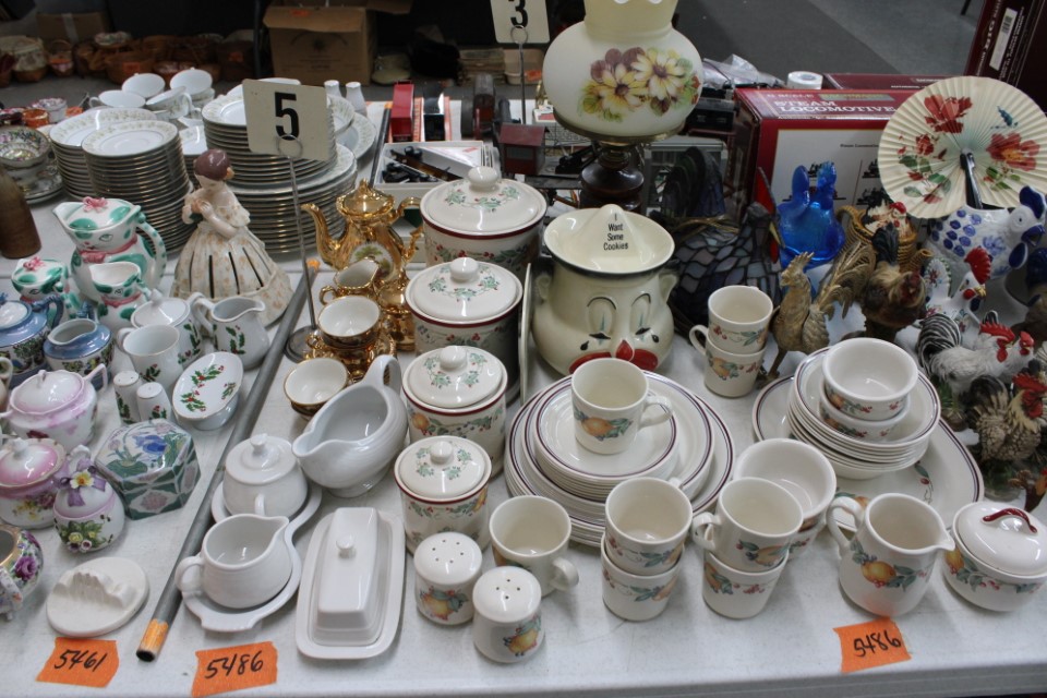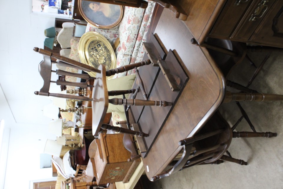 Beautiful furniture from a prominent York County family and other outstanding estates to inc: Pa House, Century, Lexington and more. Cherry dining room table w/4 chairs, Oriental style rugs, tilt top table, bird cage table, wall or sofa tables, mirrors, child's drop leaf table, leather chair, 2 matching wing back w/ottomans, pr. matching side chairs, child's oak table w/2 chairs, upholstered sofas, marble top coffee table, round dining table w/4 chairs, Oriental lamps, several 3 and 4 drawer chests, 9 drawer chest, Bombay style pcs, 4 matching wing back chairs, Ebersol & Sons hi-chair, marble top table, washstand w/towel bar, reed seat chair, corner cupboard, table & floor lamps, pictures and prints, misc. chairs and tables, end and coffee tables, inlaid chair, cherry hutch, TV stands, maple table w/6 chairs, drop leaf table, King size brass bed and bedding, 4 pc. bedroom suite, bentwood child's chair, book shelf, metal kitchen cabinet, blanket chest, Duraflame heater, sm. Sanyo fridge, refrigerator, washer, TV's, matching table w/4 chairs and hutch, Vintage Christmas ornaments and Santa's, Fiesta dishes, handbags, Zenith radio, CI horse head, dovetailed box, fur muff, quilts, pocketknives, mantle, wall and other clocks, peanut butter glasses, many cookie jars, Shiny Brite and Hallmark ornaments, Gurley candles, Pyrex, Hot Wheels and collector cars, Delft Blue pcs., Moravian Star in OB, canteens, many Longaberger baskets, Eldreth crock, Ertle Farm Country toys in OB, John Deere, New Holland, McCormick, Case etc; flatware, Nippon, linens, quilts, cups and saucers, S & P's, depression, carnival and pattern glass, telescope, piggy banks, pitchers and bowls, decorated stools, set of Noritake Andorra china, hens on nests, rooster covered dish, GI Joe toys (like new), tin barn, G scale trains and accessories, 10K, 14K, Sterling, Baltic amber and costume jewelry, toy wood boat, oil paintings, ICart, Chandler and other prints and pictures, postcards, Ford clock, 1920's-1940's license plates, books, formal dresses, jackets and other clothing, Corelle and Pflatzgraff dishes, sword, Winross, Hot Wheels and other cars and trucks, nutcrackers, Lenox, candlewick, evening handbags, vintage Santa's, many records, Pez, drink stirrers, 2 volumn York County history books, adv. tins, vintage lamp shades, globe, old photos, candy mold, Play Stations, pipe rack, wall rack, milk bottles, min. drop front desk and chest of drawers, sled, MTD snowblower on tracks, ladders, grill, tools, large parrot cage, wet/dry vac, storage boxes, DVD's, sm. kitchen appliances, Marshall amp and other electronics, hedge trimmers, hubcaps, games, Blimpy neon sign, B & D jump start. Christmas decorations, luggage, shelving sweepers, coolers, folding tables, two rooms of box lots. Preview: Sunday evening from 6 to 8 PM. Terms: Cash or Approved PA check, VISA, MC, DISC. AMEX. G scale trains sell at 10 AM, Jewelry sells at 12 noon, Furniture sells at 3:00 PM. 10% Buyers Premium.