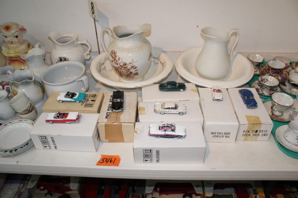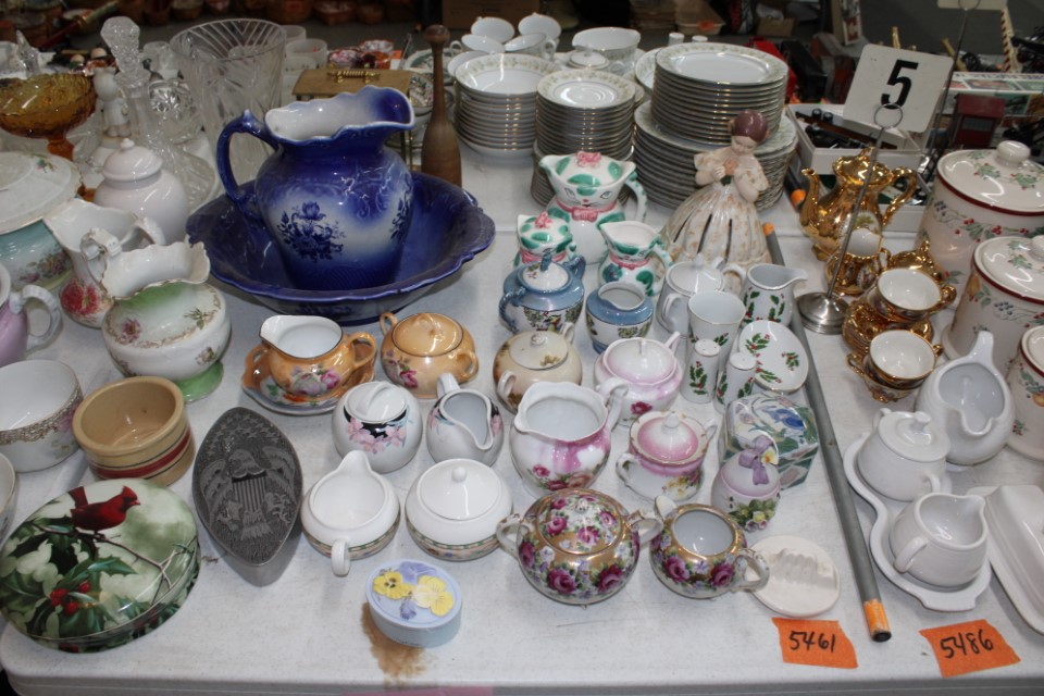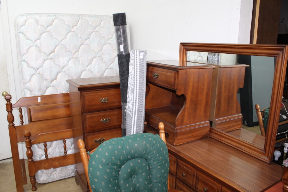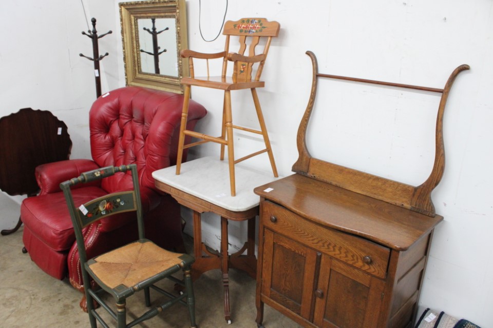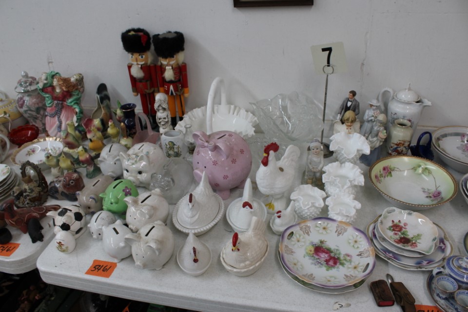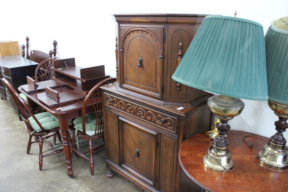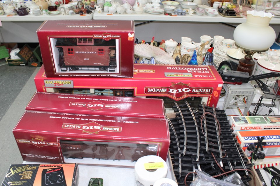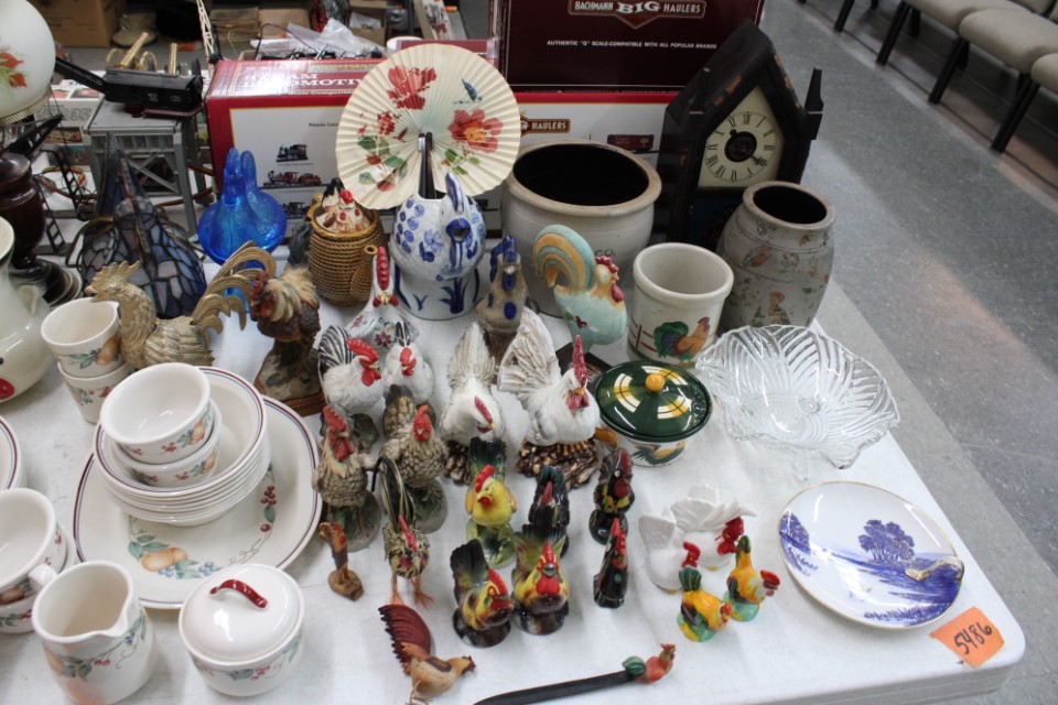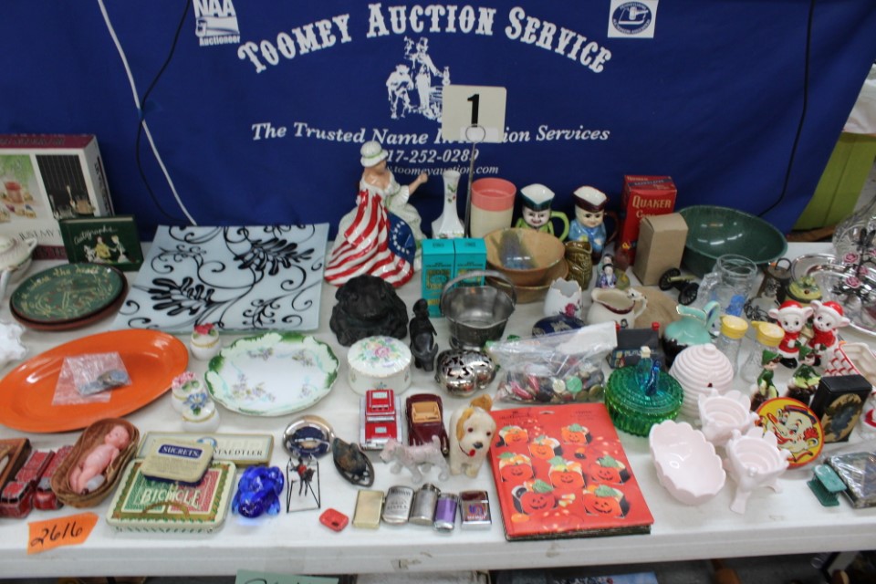Beautiful furniture from a prominent York County family and other outstanding estates to inc: Pa House, Century, Lexington and more. Cherry dining room table w/4 chairs, Oriental style rugs, tilt top table, bird cage table, wall or sofa tables, mirrors, child's drop leaf table, leather chair, 2 matching wing back w/ottomans, pr. matching side chairs, child's oak table w/2 chairs, upholstered sofas, marble top coffee table, round dining table w/4 chairs, Oriental lamps, several 3 and 4 drawer chests, 9 drawer chest, Bombay style pcs, 4 matching wing back chairs, Ebersol & Sons hi-chair, marble top table, washstand w/towel bar, reed seat chair, corner cupboard, table & floor lamps, pictures and prints, misc. chairs and tables, end and coffee tables, inlaid chair, cherry hutch, TV stands, maple table w/6 chairs, drop leaf table, King size brass bed and bedding, 4 pc. bedroom suite, bentwood child's chair, book shelf, metal kitchen cabinet, blanket chest, Duraflame heater, sm. Sanyo fridge, refrigerator, washer, TV's, matching table w/4 chairs and hutch, Vintage Christmas ornaments and Santa's, Fiesta dishes, handbags, Zenith radio, CI horse head, dovetailed box, fur muff, quilts, pocketknives, mantle, wall and other clocks, peanut butter glasses, many cookie jars, Shiny Brite and Hallmark ornaments, Gurley candles, Pyrex, Hot Wheels and collector cars, Delft Blue pcs., Moravian Star in OB, canteens, many Longaberger baskets, Eldreth crock, Ertle Farm Country toys in OB, John Deere, New Holland, McCormick, Case etc; flatware, Nippon, linens, quilts, cups and saucers, S & P's, depression, carnival and pattern glass, telescope, piggy banks, pitchers and bowls, decorated stools, set of Noritake Andorra china, hens on nests, rooster covered dish, GI Joe toys (like new), tin barn, G scale trains and accessories, 10K, 14K, Sterling, Baltic amber and costume jewelry, toy wood boat, oil paintings, ICart, Chandler and other prints and pictures, postcards, Ford clock, 1920's-1940's license plates, books, formal dresses, jackets and other clothing, Corelle and Pflatzgraff dishes, sword, Winross, Hot Wheels and other cars and trucks, nutcrackers, Lenox, candlewick, evening handbags, vintage Santa's, many records, Pez, drink stirrers, 2 volumn York County history books, adv. tins, vintage lamp shades, globe, old photos, candy mold, Play Stations, pipe rack, wall rack, milk bottles, min. drop front desk and chest of drawers, sled, MTD snowblower on tracks, ladders, grill, tools, large parrot cage, wet/dry vac, storage boxes, DVD's, sm. kitchen appliances, Marshall amp and other electronics, hedge trimmers, hubcaps, games, Blimpy neon sign, B & D jump start. Christmas decorations, luggage, shelving sweepers, coolers, folding tables, two rooms of box lots. Preview: Sunday evening from 6 to 8 PM. Terms: Cash or Approved PA check, VISA, MC, DISC. AMEX. G scale trains sell at 10 AM, Jewelry sells at 12 noon, Furniture sells at 3:00 PM. 10% Buyers Premium.