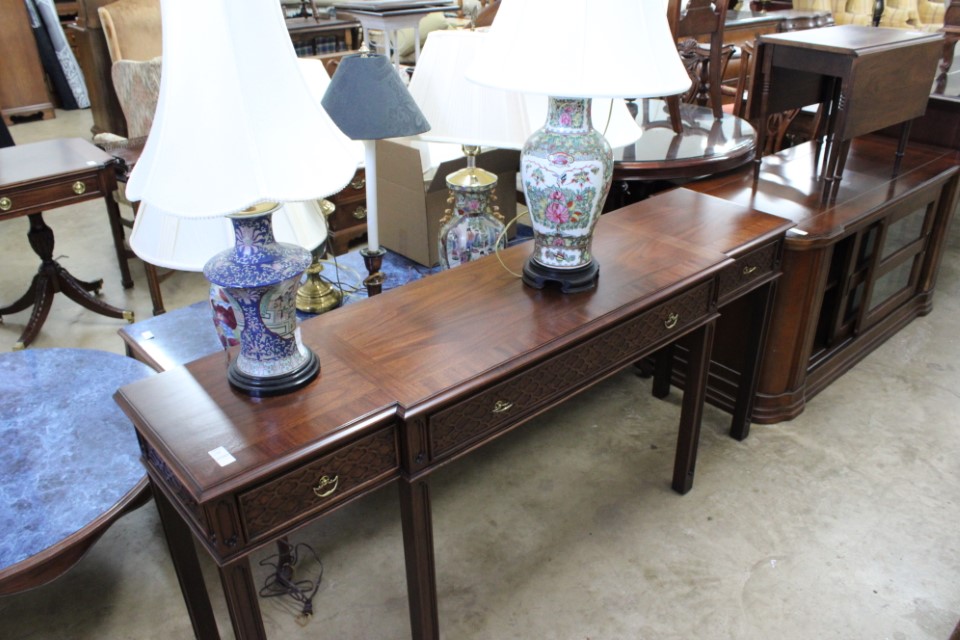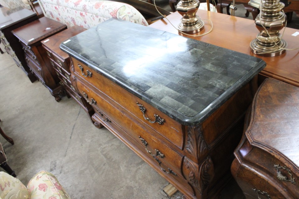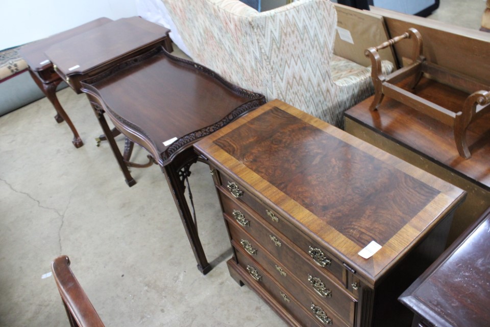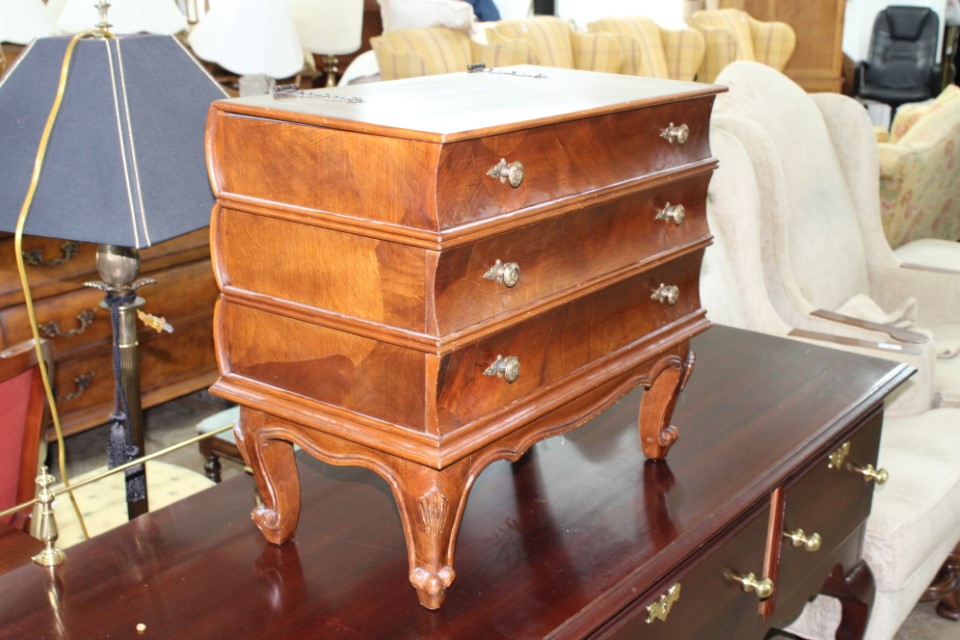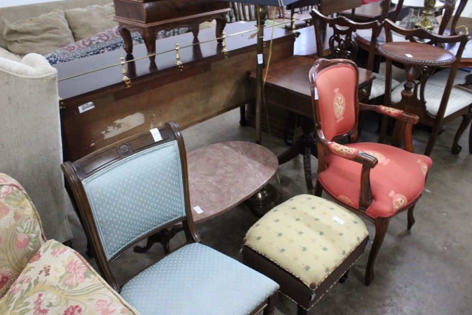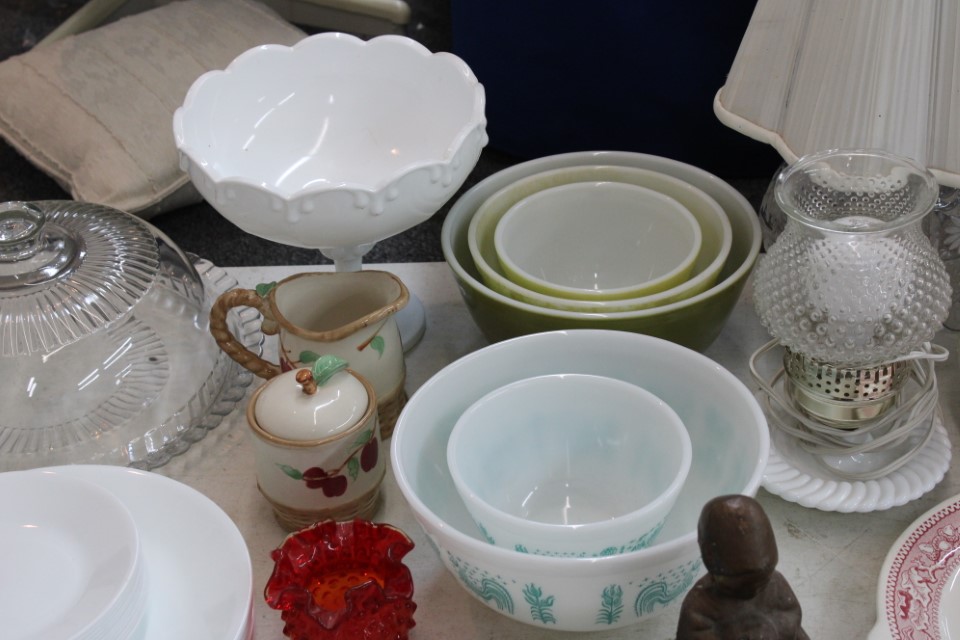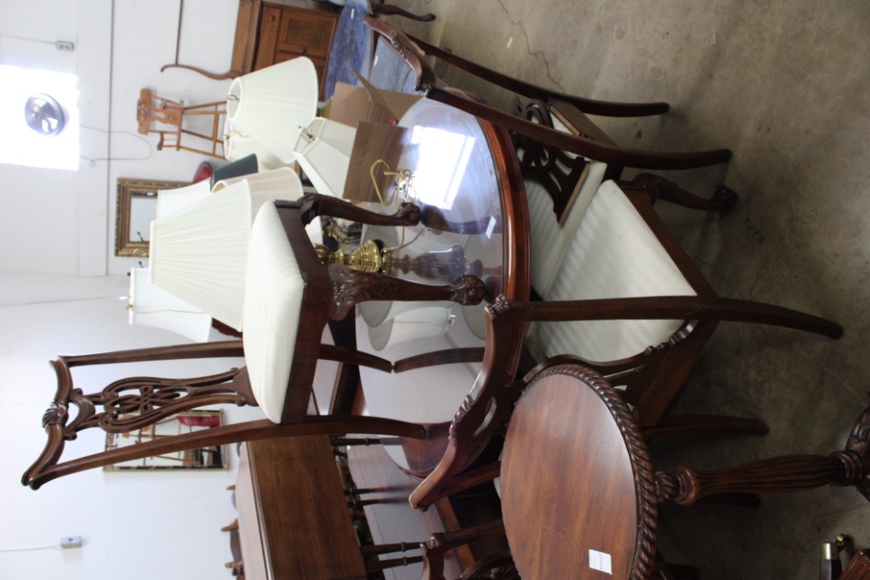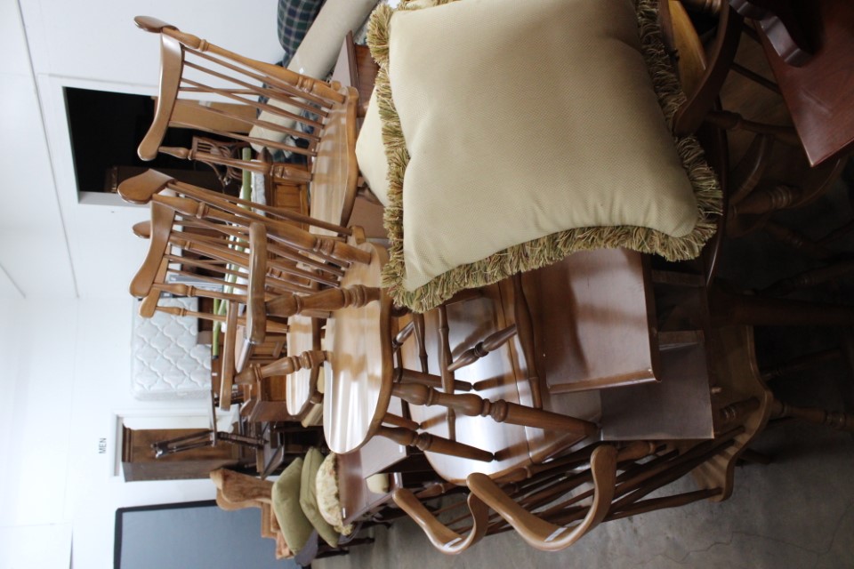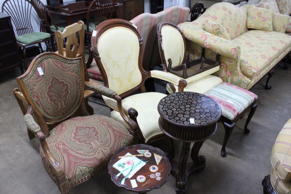 Beautiful furniture from a prominent York County family and other outstanding estates to inc: Pa House, Century, Lexington and more. Cherry dining room table w/4 chairs, Oriental style rugs, tilt top table, bird cage table, wall or sofa tables, mirrors, child's drop leaf table, leather chair, 2 matching wing back w/ottomans, pr. matching side chairs, child's oak table w/2 chairs, upholstered sofas, marble top coffee table, round dining table w/4 chairs, Oriental lamps, several 3 and 4 drawer chests, 9 drawer chest, Bombay style pcs, 4 matching wing back chairs, Ebersol & Sons hi-chair, marble top table, washstand w/towel bar, reed seat chair, corner cupboard, table & floor lamps, pictures and prints, misc. chairs and tables, end and coffee tables, inlaid chair, cherry hutch, TV stands, maple table w/6 chairs, drop leaf table, King size brass bed and bedding, 4 pc. bedroom suite, bentwood child's chair, book shelf, metal kitchen cabinet, blanket chest, Duraflame heater, sm. Sanyo fridge, refrigerator, washer, TV's, matching table w/4 chairs and hutch, Vintage Christmas ornaments and Santa's, Fiesta dishes, handbags, Zenith radio, CI horse head, dovetailed box, fur muff, quilts, pocketknives, mantle, wall and other clocks, peanut butter glasses, many cookie jars, Shiny Brite and Hallmark ornaments, Gurley candles, Pyrex, Hot Wheels and collector cars, Delft Blue pcs., Moravian Star in OB, canteens, many Longaberger baskets, Eldreth crock, Ertle Farm Country toys in OB, John Deere, New Holland, McCormick, Case etc; flatware, Nippon, linens, quilts, cups and saucers, S & P's, depression, carnival and pattern glass, telescope, piggy banks, pitchers and bowls, decorated stools, set of Noritake Andorra china, hens on nests, rooster covered dish, GI Joe toys (like new), tin barn, G scale trains and accessories, 10K, 14K, Sterling, Baltic amber and costume jewelry, toy wood boat, oil paintings, ICart, Chandler and other prints and pictures, postcards, Ford clock, 1920's-1940's license plates, books, formal dresses, jackets and other clothing, Corelle and Pflatzgraff dishes, sword, Winross, Hot Wheels and other cars and trucks, nutcrackers, Lenox, candlewick, evening handbags, vintage Santa's, many records, Pez, drink stirrers, 2 volumn York County history books, adv. tins, vintage lamp shades, globe, old photos, candy mold, Play Stations, pipe rack, wall rack, milk bottles, min. drop front desk and chest of drawers, sled, MTD snowblower on tracks, ladders, grill, tools, large parrot cage, wet/dry vac, storage boxes, DVD's, sm. kitchen appliances, Marshall amp and other electronics, hedge trimmers, hubcaps, games, Blimpy neon sign, B & D jump start. Christmas decorations, luggage, shelving sweepers, coolers, folding tables, two rooms of box lots. Preview: Sunday evening from 6 to 8 PM. Terms: Cash or Approved PA check, VISA, MC, DISC. AMEX. G scale trains sell at 10 AM, Jewelry sells at 12 noon, Furniture sells at 3:00 PM. 10% Buyers Premium.